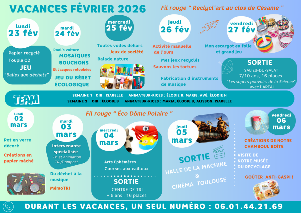 Du 23 FÉVRIER AU 06 MARS: PROGRAMME DES VACANCES D’HIVER